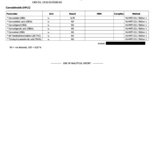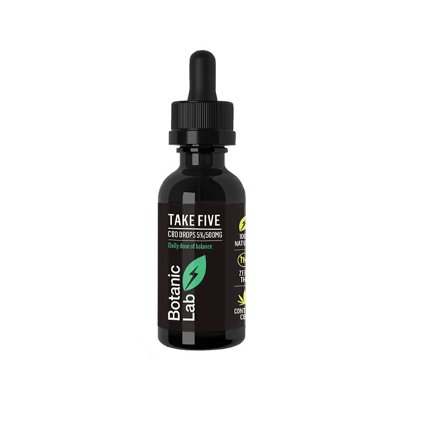Take Five is a 10ml premium CBD oil with zero THC guaranteed. The oil has added hemp terpenes myrcene, limonene, alpha & beta-pinene, linalool, b-caryophyllene, caryophyllene oxide, terpinolene and humulene.